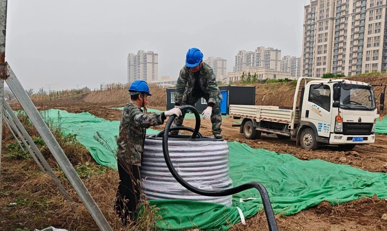 ? ? ? ?遷建工程施工區域鄰近主路,面對臨時用電搭建與打井電纜應急敷設工作需過路施工且地下管線密集的困難,還要兼顧后續的施工便利性與用電安全性。項目部抽調12名黨員技術骨干組建先鋒小組,聚焦工程建設用電難點痛點開展專項攻堅。