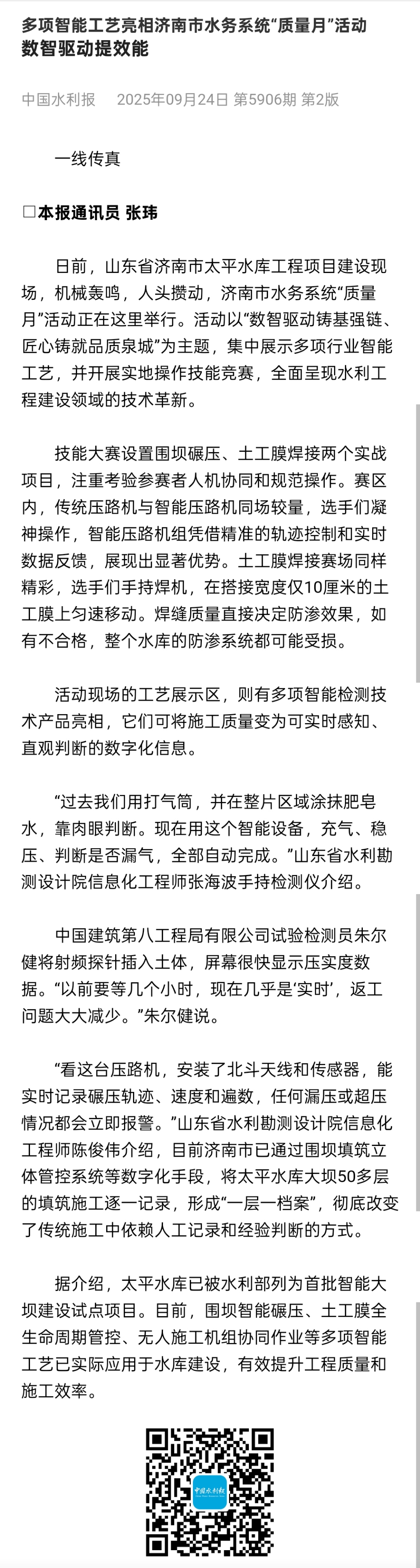 ? ? ? ?下一步,清源水務(wù)集團將繼續(xù)以高標準完成項目工程建設(shè),以此次濟南市水務(wù)系統(tǒng)“質(zhì)量月”活動為契機,推動太平水庫工程在數(shù)字化轉(zhuǎn)型及智能化管理等方面持續(xù)走深走實,促進太平水庫工程高質(zhì)量建設(shè)發(fā)展。